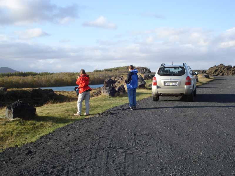 erstarrter Lava rum. Es gibt auch ein paar Vulkankrater. Dann fahren wir wieder über die Straße 1 zurück
