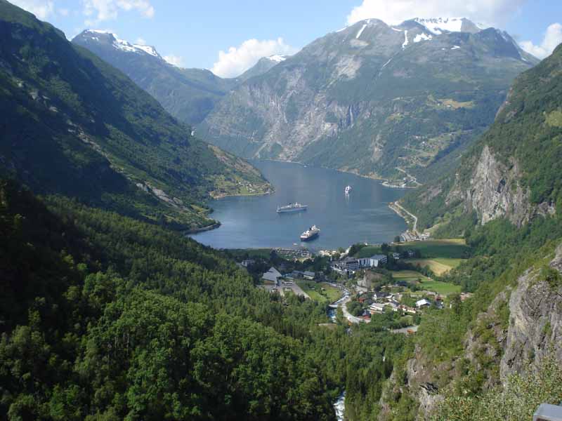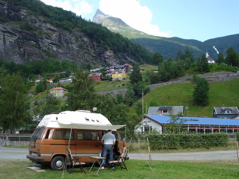 Wir fahren bis Geiranger kommen dort recht früh an und bleiben auf dem Campingplatz. Die Umgebung ist,