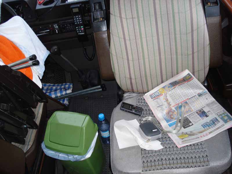 Der Bus ist heute besonders gut aufgeräumt, sogar den Wetterbericht findet man gleich