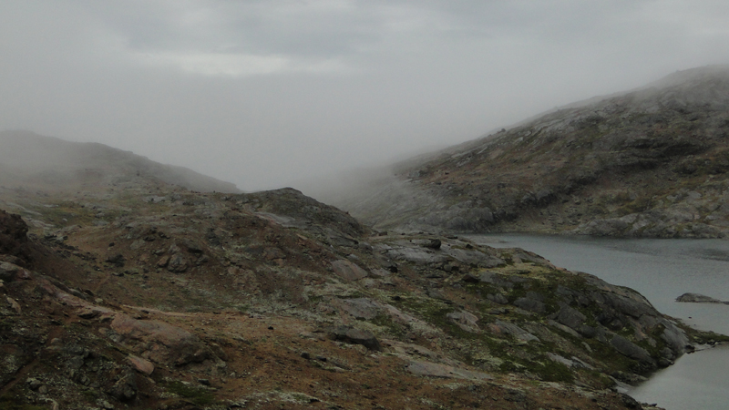 Am Morgen ist alles sehr neblig, es sieht furchtbar aus, aber es regnet nicht mehr.