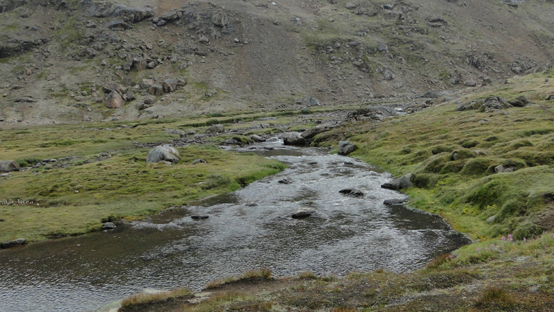 eine ausgiebige Wanderung durch ein Tal mit vielen Blumen, Seen und einen kleinen Wasserfall. Es fällt uns auf dass es praktisch
