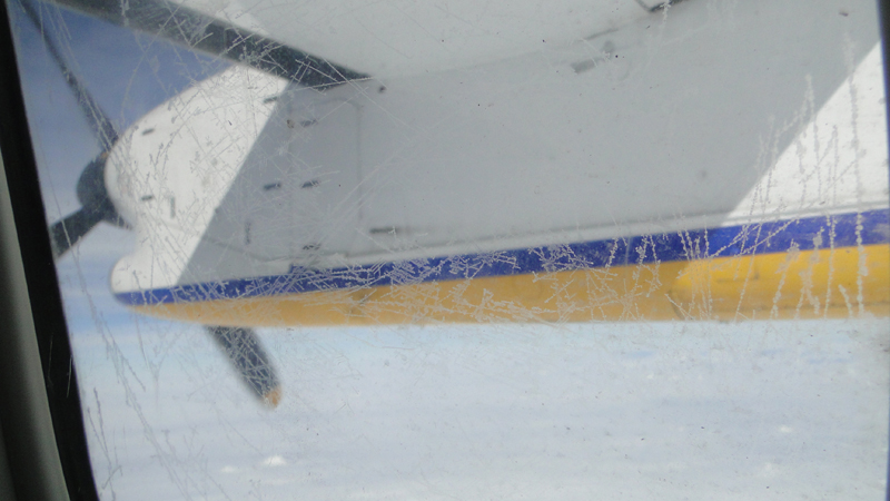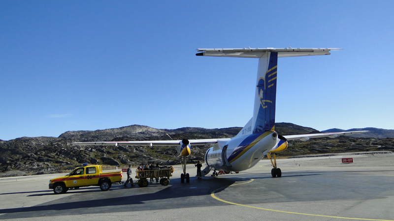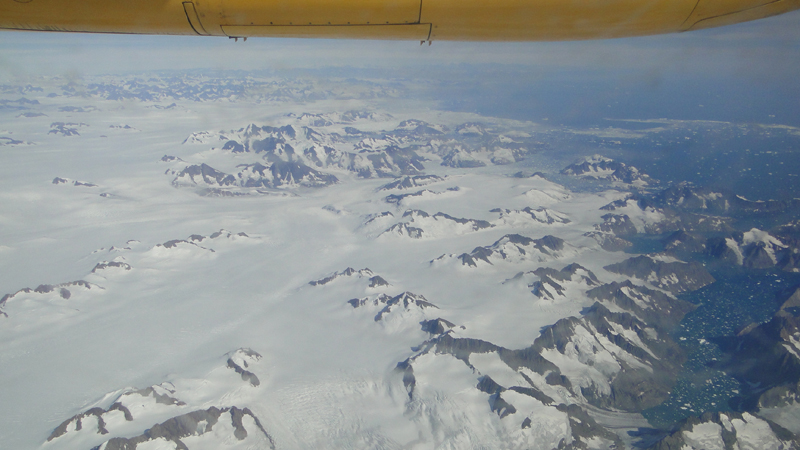 Dash (Turboprop) nach Ilulissat auf der Westseite Grönlands. Der Flug ist einsame Spitze!!! Das Wetter ist unvorstellbar gut und so sehen