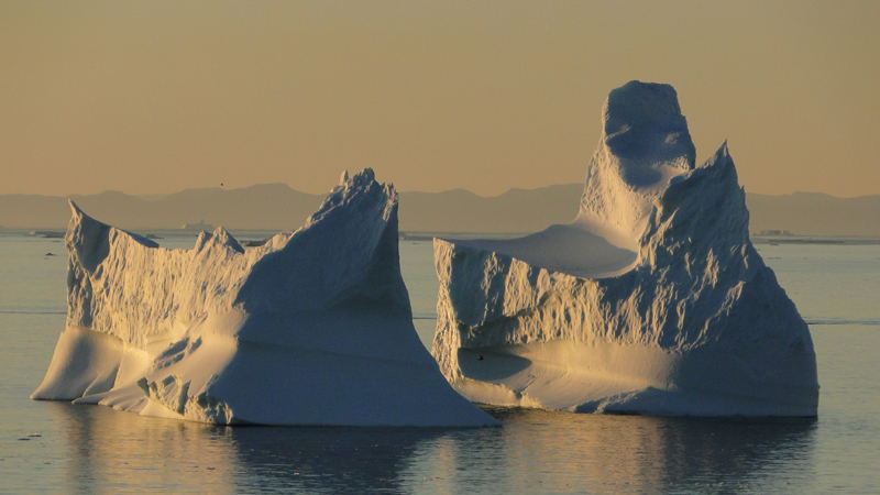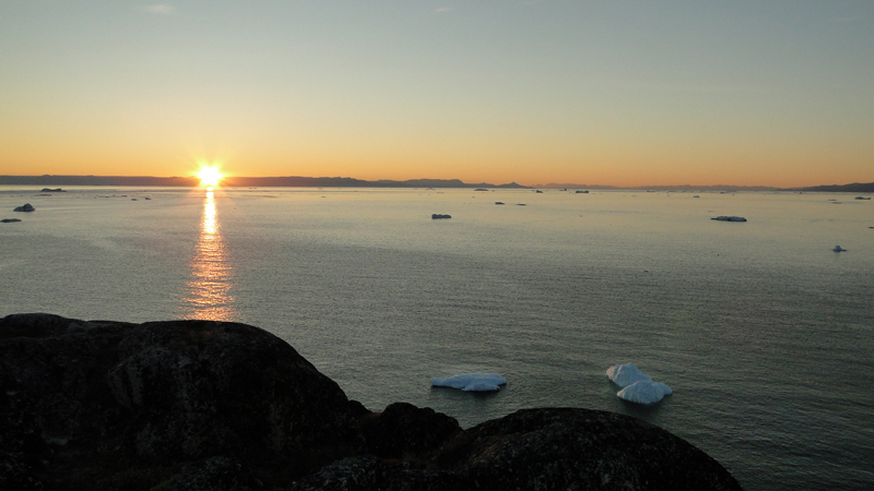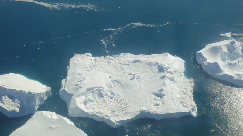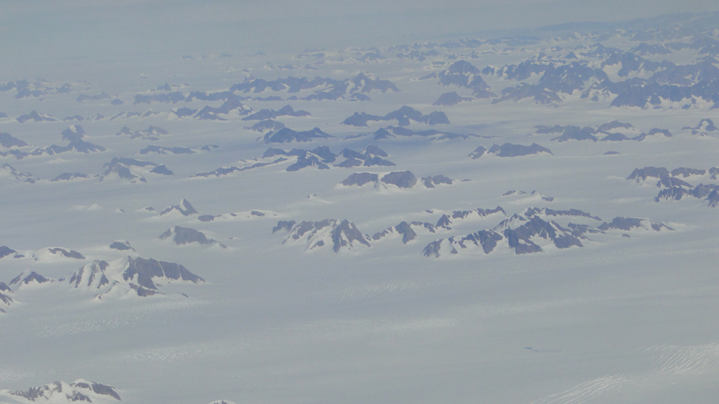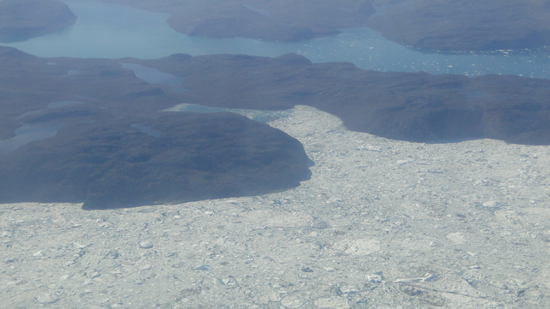 wir etliche Eisberge vor der grönländischen Küste. Aber das beste ist das grönländische Inlandseis! Über mehrere hundert Kilometer sehen