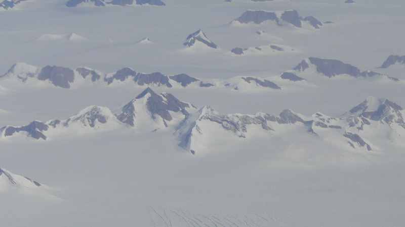 wir den Eispanzer der bis zu 3000 m dick sein kann. Dann gibt es wieder tiefe Gletscherspalten und Gletscherzungen von denen Eisberge abbrechen.