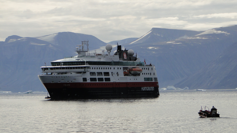 Zur Frühstückszeit ist die "Fram" (Schiff für Expeditionsseereisen) hier agekommen und so sind heute etwa 320 Leute mehr im Ort unterwegs.