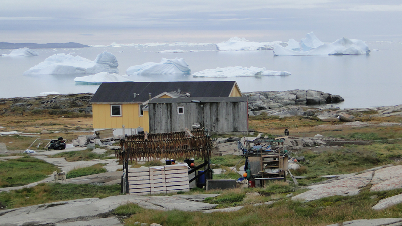 Eisberge zu sehen und zu fotografieren. Dann landen wir in Oqaatsut. Der Ort hat ca. 40 Einwohner. Es gibt, wie in vielen kleinen Orten,