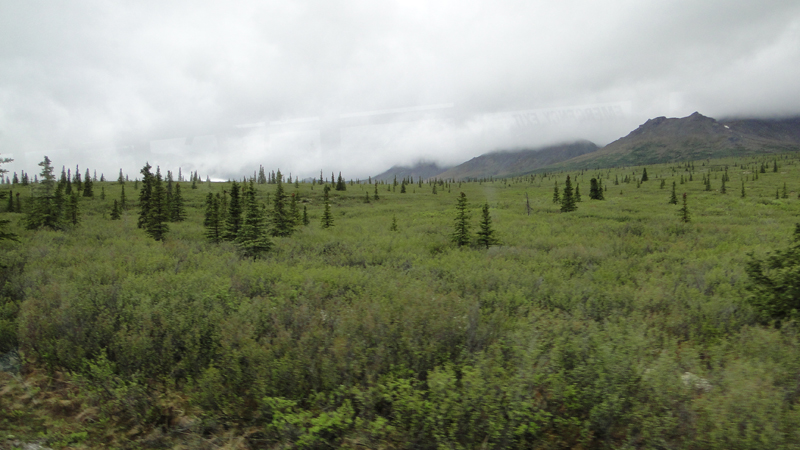 Es hört sogar auf zu regnen und der größte Teil der Busfahrt durch den Denali Nationalpark verläuft trocken.