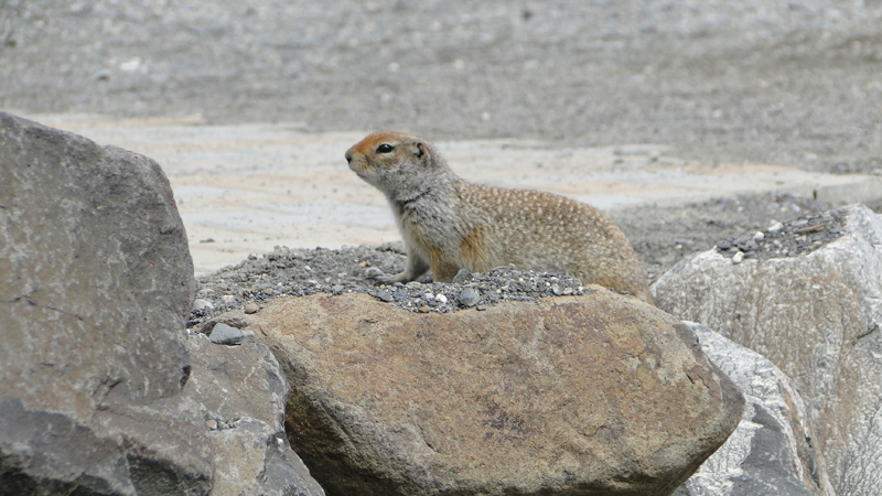 entdeckt. Wir sehen einige Karibus, recht viele Elche, einen Fuchs und einige Eichhörnchen, die hier mehr grau als