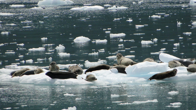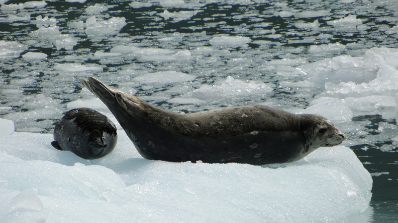 Außer dem spektakulären Gletscher selbst gibt es dann noch Robben, Seeotter, Seelöwen und Wale zu sehen.