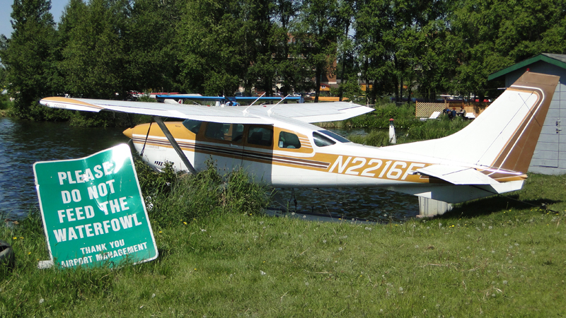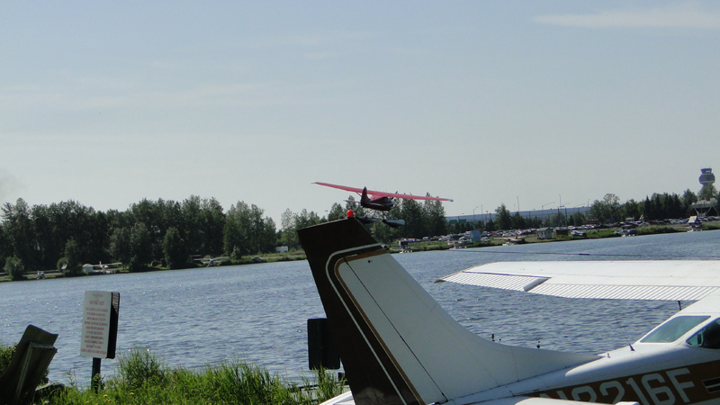 die auf einem See und diversen künstlichen Seitenarmen davon geparkt sind. In kurzen Abständen startet oder wassert