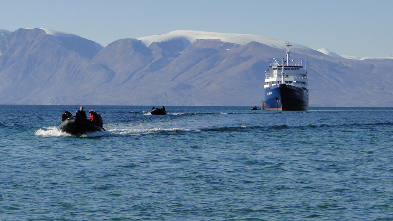 Während des Mittagessens fahren wir weiter im Fjord und landen am Nachmittag in der Holmbukt. Hier finden