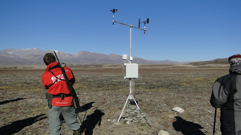wir eine weite, ebene Tundrafläche. Wir besichtigen eine Jägerhütte und entdecken eine automatische Wetterstation.
