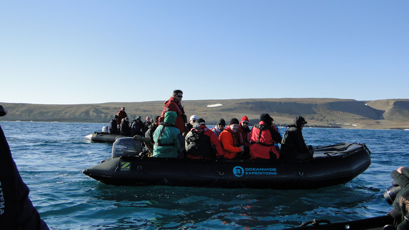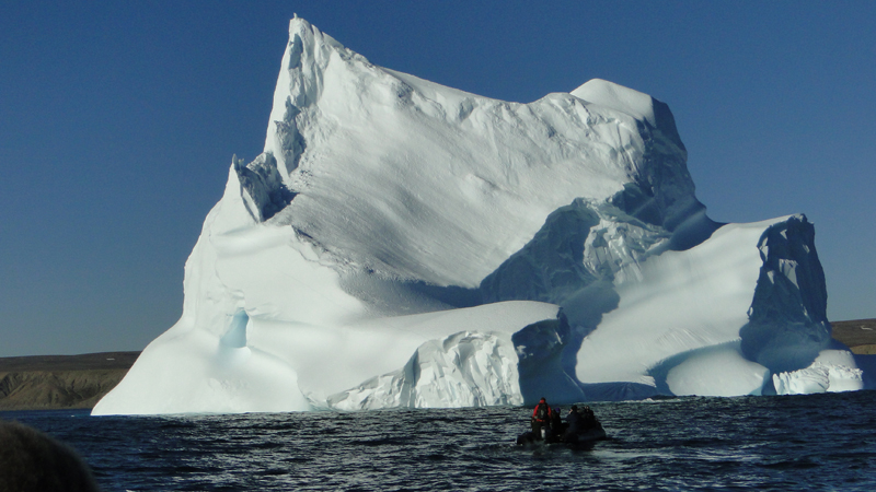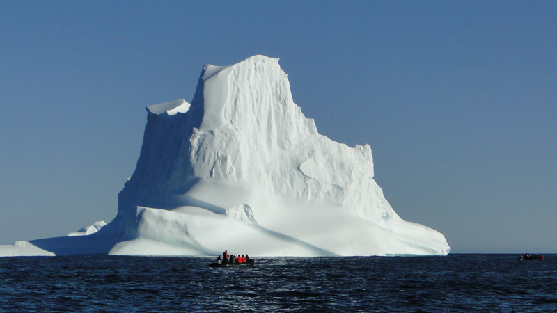 aber recht hoch sind wird beschlossen nicht zu landen sondern eine "Zodiac Cruise" um die Eisberge zu machen.