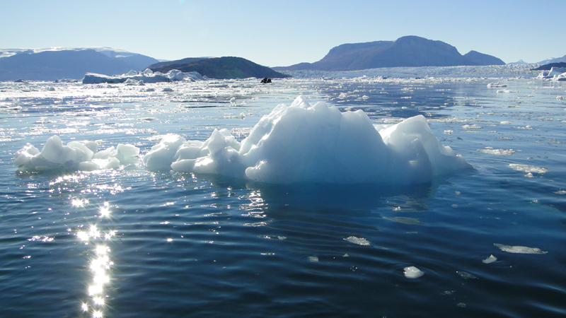 von Eisbergen gerade so wimmelt. Ein guter Grund für eine weitere Zodiac Cruise. Blauer Himmel