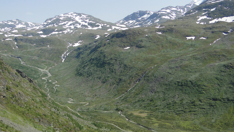 Weiter geht es auf der Straße 55 durch das Bøverdalen ins Sognefjell. Die Gegend ist einfach dramatisch schön, es