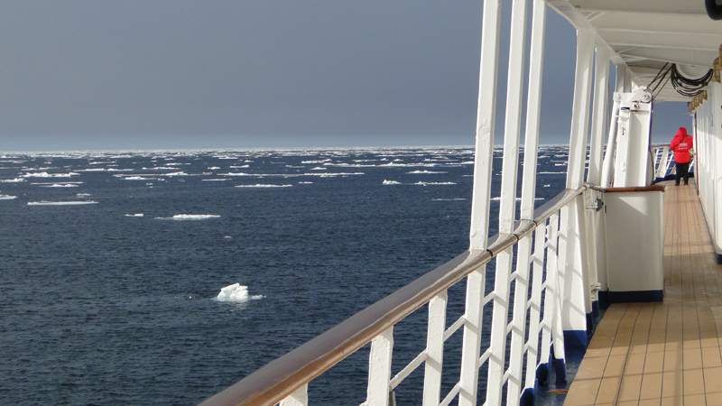 Heute ist noch ein Tag auf See. Zeitweise kommen wir in dichteres Eis, aber man findet immer wieder