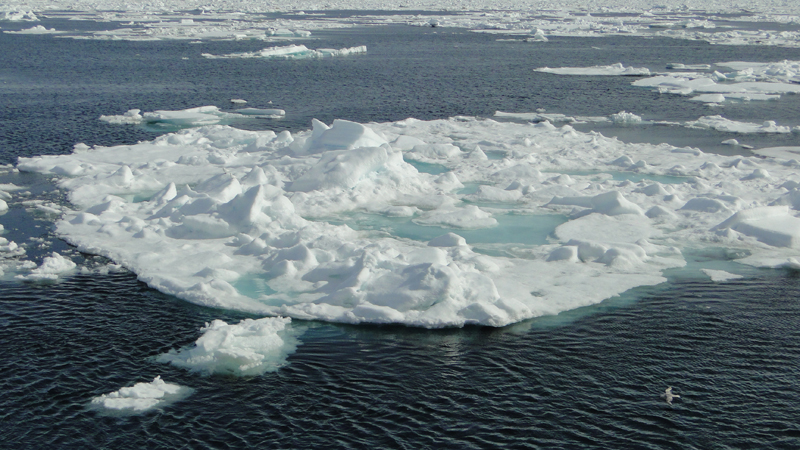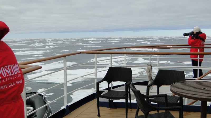 Wir fahren durch loses Eis, mal dichter, mal offener. Irgendwie finden sie einen Weg durch die Eisschollen.