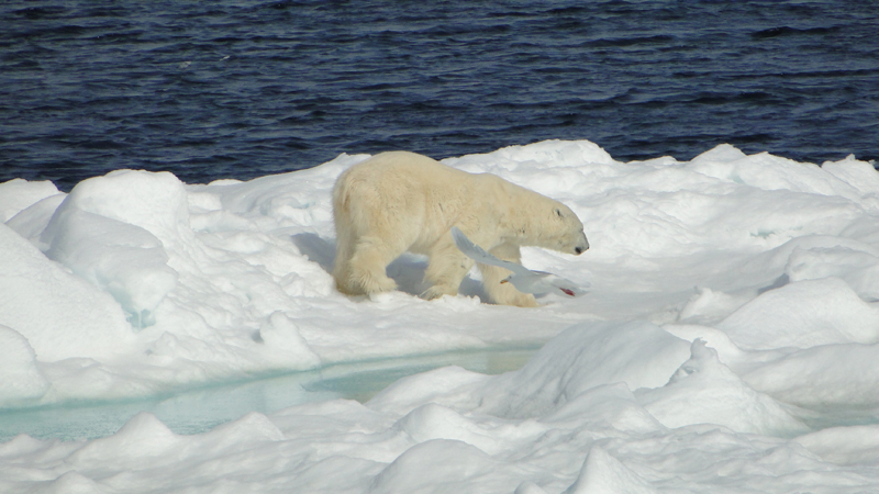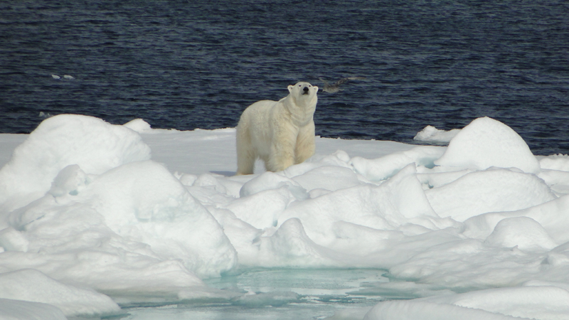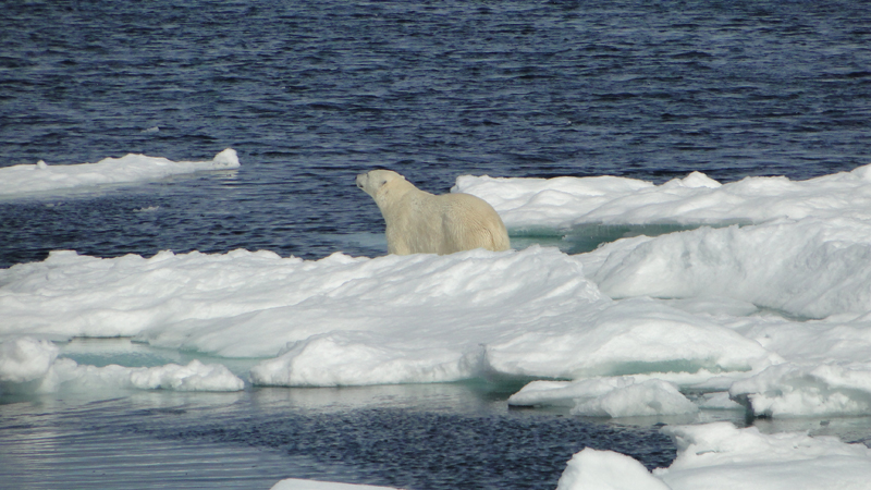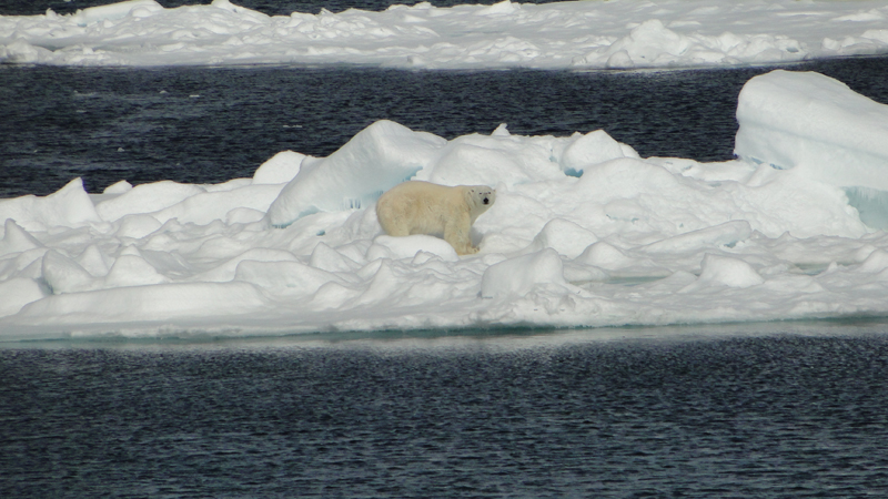 Am Vormittag beobachten wir ein Walross und dann treffen wir noch auf einen Eisbären, den wir recht nah am