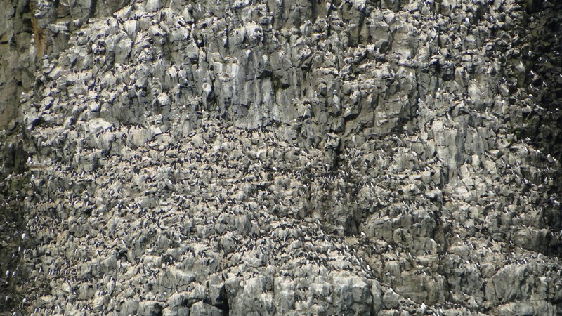 Es gibt zunächst wieder einen Vogelfelsen zu bestaunen. Nicht nur das Geschrei der Vögel sondern auch tausende