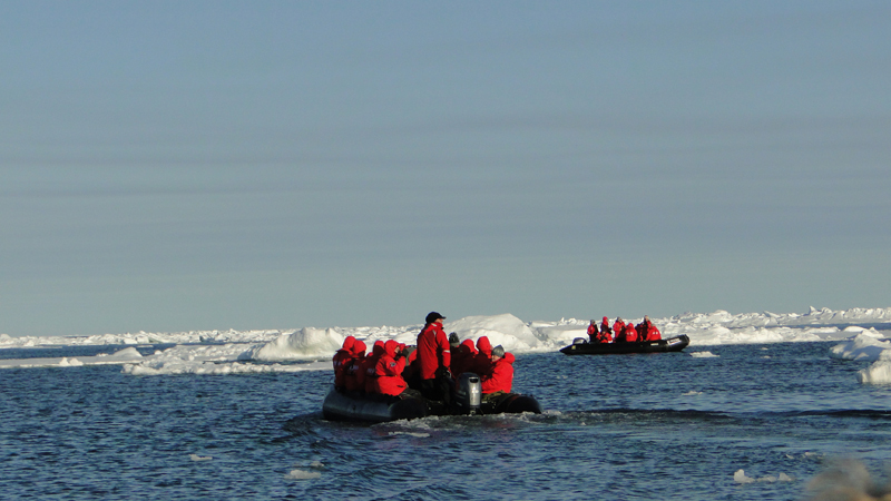 Also werden die Zodiacs zu Wasser gelassen und es geht noch etwa eine Stunde durch die Eissschollen. Wetter: